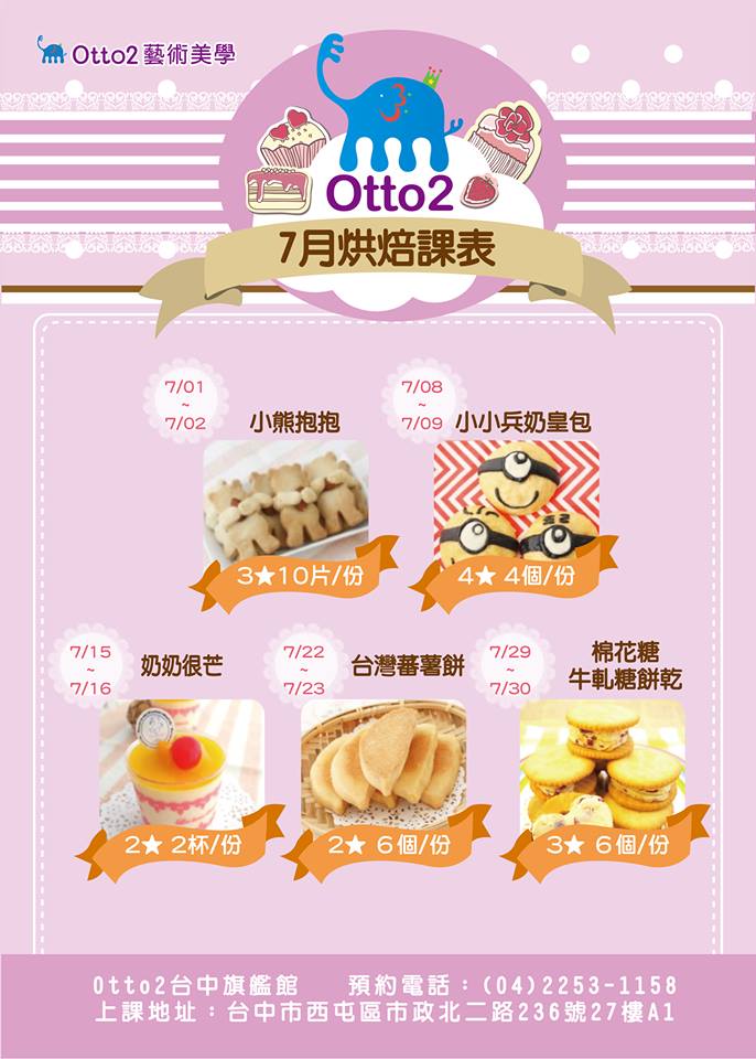 Otto2藝術美學【台中旗艦館】-烘焙課程 106 07月活動