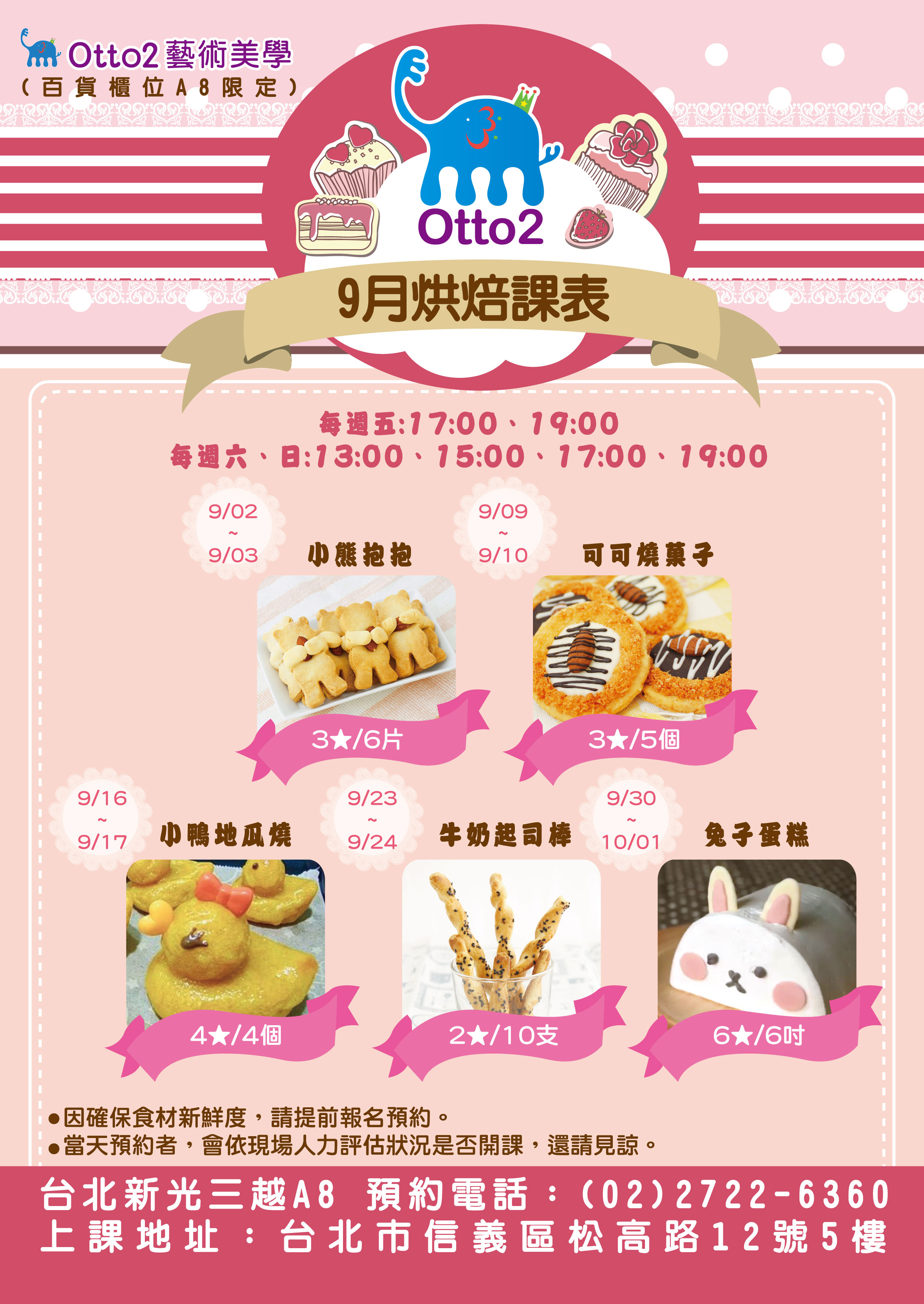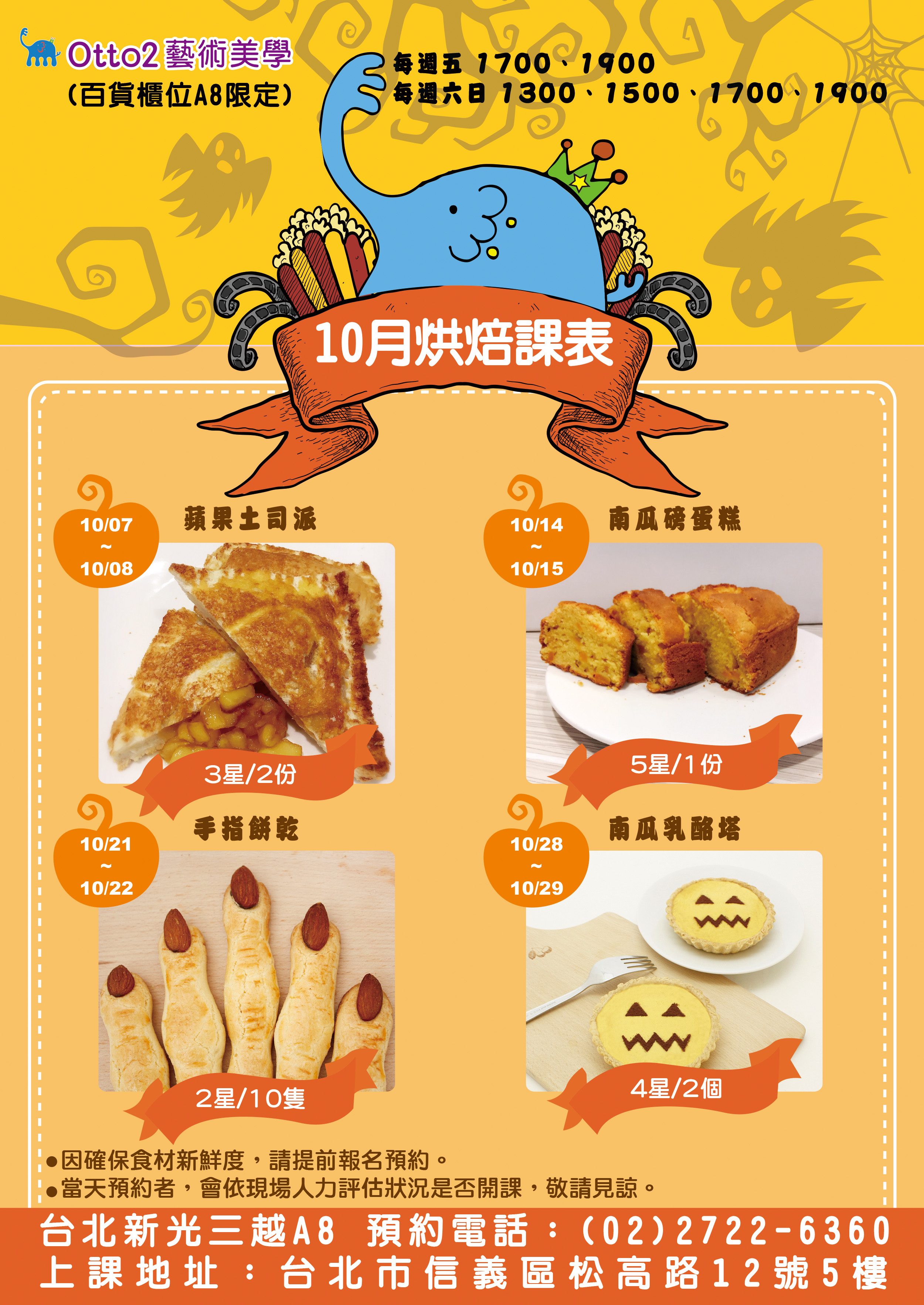 首頁 最新消息 最新消息 Otto2藝術美學【百貨A8】-烘焙課程 106 10月活動 最新消息 2017.10.03 Otto2藝術美學【百貨A8】-烘焙課程 106 10月活動 Otto2藝術美學【百貨A8櫃位】-烘焙課程 106 10月|電子報連結點| |回首頁| 回上一頁