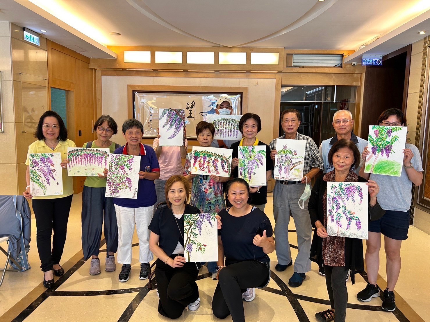 婉萍老師為樂齡長者們上了一堂美麗紫藤花開的繪畫課程,大家彷彿置身在紫色隧道內,很多奶奶分享~活到這個歲數才體會到原來畫畫這麼快樂舒壓!🥰